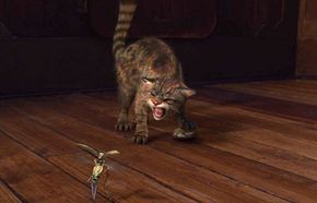 One big challenge, Fink says, was the frequent interaction between humans and digital creatures -- like when people touch their daemons. The effects team had to come up with a way to make the computer-generated fur react to contact with a human hand. But the tougher problem was "a fully CG, fully animated fight between two bears in front of 100 to 120 other bears in the middle of a live-action movie," he says. "We had to create a photo-real environment with bears that you'd really believe are fighting."
