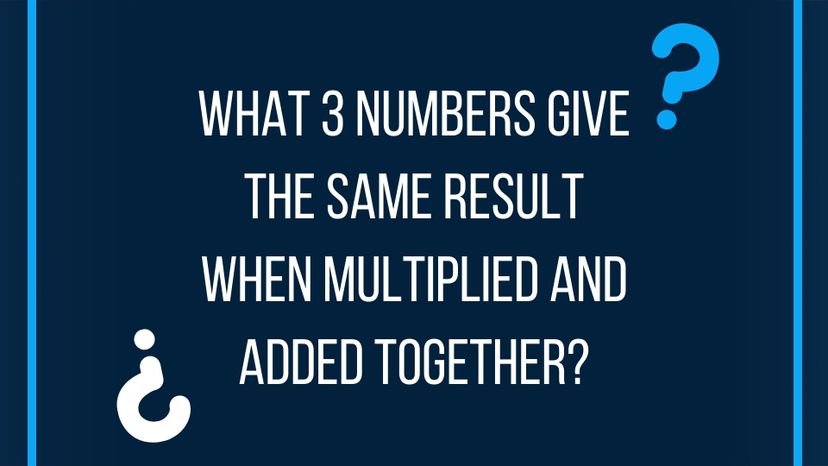 Advertisement "" Scroll down for the answer below! HowStuffWorks Advertisement Riddle Answer 1, 2, and 3 (1 + 2 + 3 = 6 and 1 x 2 x 3 = 6)